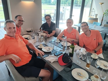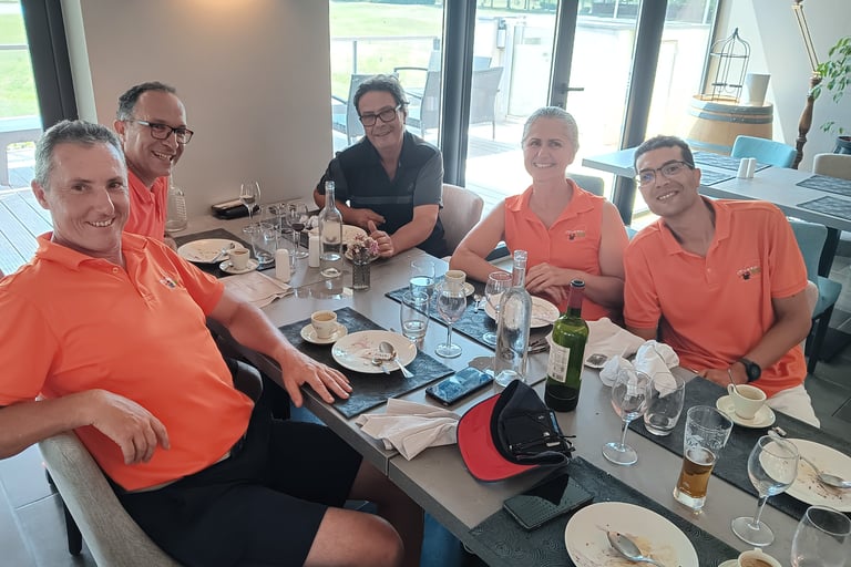 Le repas servit par le golf de Langon dans une ambiance très conviviale était copieux avec du vin rouge à volonté.